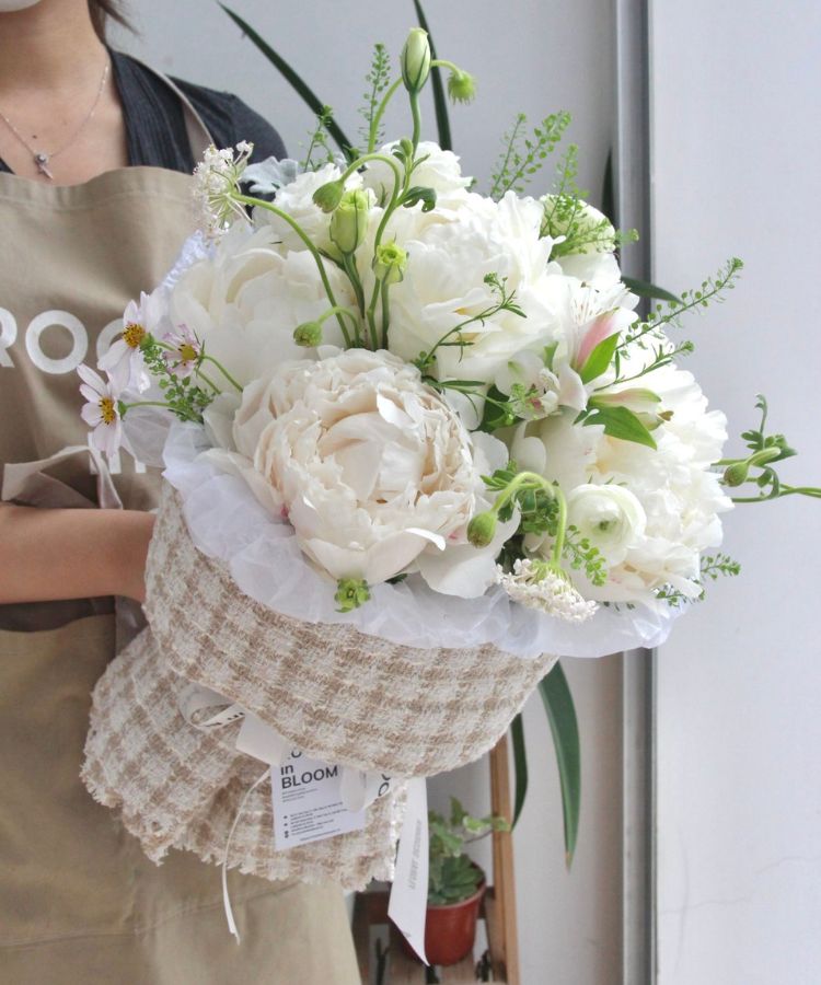 Bó hoa Mẫu đơn trắng Calliandra